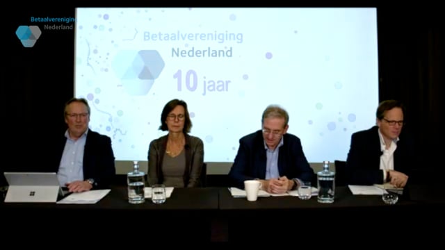 Aanvankelijk was op 18 november een feestelijke editie van het Jaarcongres gepland, maar deze kon – door de coronarichtlijnen – in de bedachte vorm geen doorgang hebben. In plaats daarvan organiseerden we een besloten online bijeenkomst voor onze leden. De bijeenkomst bestond uit twee delen. Het eerste deel was de formele Algemene Ledenvergadering, het tweede deel stond in het teken van de ontwikkelingen in het betalingsverkeer van de afgelopen 10 jaar. Inge van Dijk (DNB) gaf daarover een lezing en stond stil bij de uitdagingen die voor ons liggen. Miriam Osten (Betaalvereniging) presenteerde de resultaten van onderzoek onder consumenten. Aansluitend leidde Gijs Boudewijn een paneldiscussie met Inge van Dijk, Kitty Koelemeijer (Nijenrode) en Suzan van Eeten (Rabobank). Tot onze vreugde keken tegen de honderd belangstellenden live mee. We maakten een video om u een impressie van de bijeenkomst te geven.