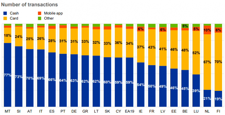 - Finland en Nederland aan kop met kaartbetalingen in eurozone