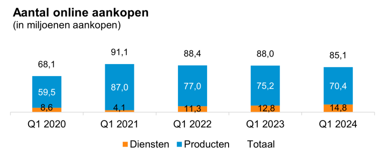 Dutch consumers spent over €9 billion online in Q1 2024, up 3% on Q1 2023. The number of online purchases decreased by 3% to over 85 million. However, more purchases were made at foreign webshops; both the number of purchases and spending cross-border increased. This is according to the latest figures from the Thuiswinkel Markt Monitor, the research into online consumer purchases in the Netherlands. The research is conducted by GfK, commissioned by Thuiswinkel.org and Retail Insiders and in cooperation with PostNL and the Dutch Payments Association.