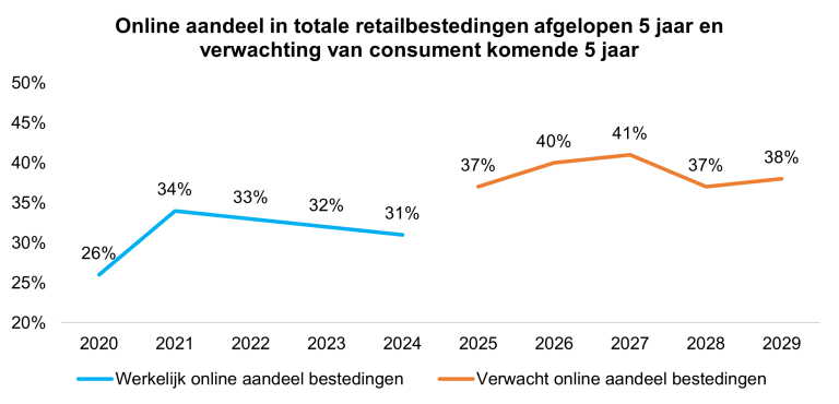 In Q1 2024, 31% of all consumer spending was spent online. Judging by consumer expectations, this percentage will increase to 38% in the coming years (see Figure 3). This is according to the Home Shopping Future Monitor, also released today. More than half of consumers say they will order at least as much, or even more, from Chinese online shops. Consumers also expect to use their smartphones more when shopping online. Marlene ten Ham: “That consumers expect to spend more online is no surprise. The online market is growing, both in terms of the number of providers and the range of products on offer. Consumers now mainly order online because it is convenient, saves time and there is a wide range available. The future will, however, demand from both consumers and entrepreneurs that we become more conscious about consuming, but also look differently at design, production, (re)use and lifespan and products.”